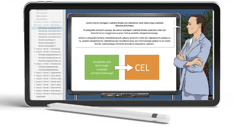 Dołącz do naszego interaktywnego szkolenia i naucz się skutecznie charakteryzować produkty ubezpieczeniowe, ich zalety oraz ograniczenia dla klienta. Identyfikuj i stosuj najnowsze regulacje prawne związane z dystrybucją ubezpieczeń. Kompleksowy pakiet szkoleń, wypełniający 15-godzinny wymóg szkolenia dla pracowników dystrybuujących produkty ubezpieczeniowe.