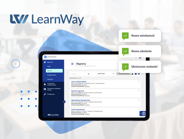✔ zapewni rozbudowane raportowanie danych szkoleniowych,